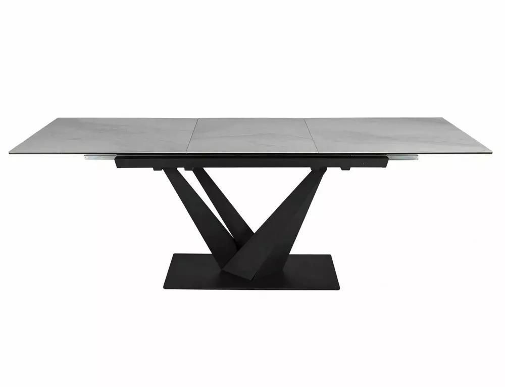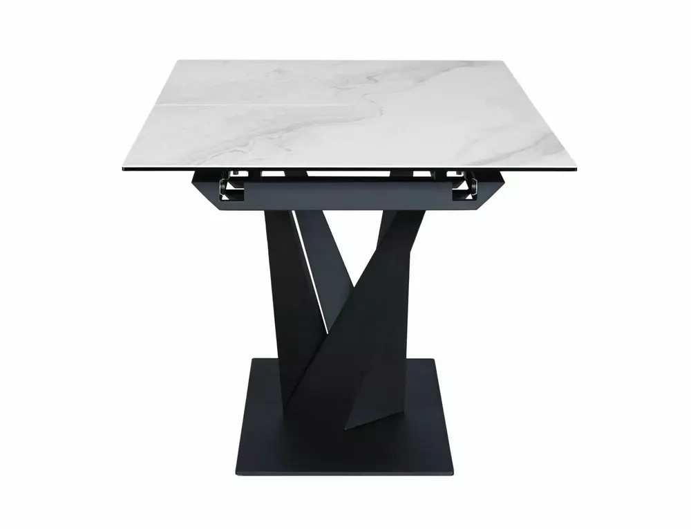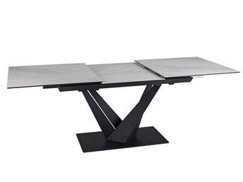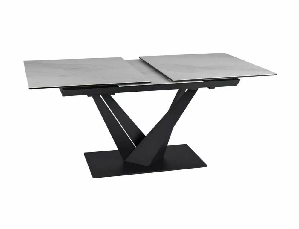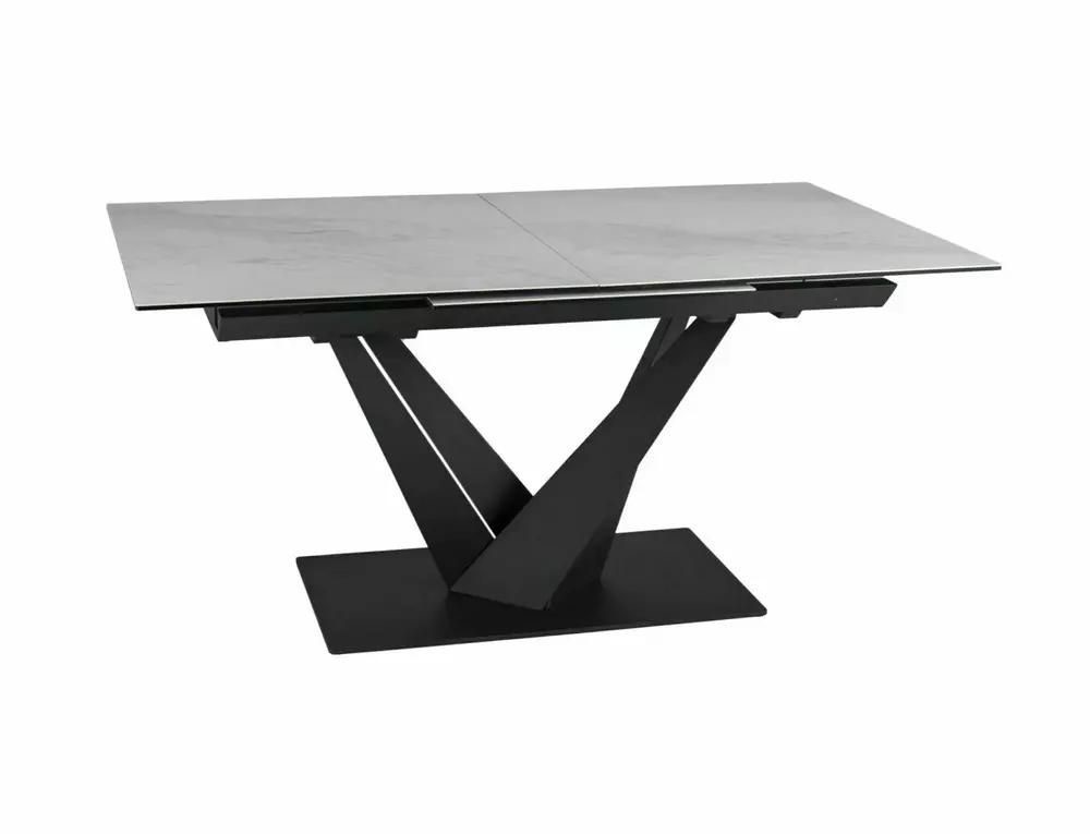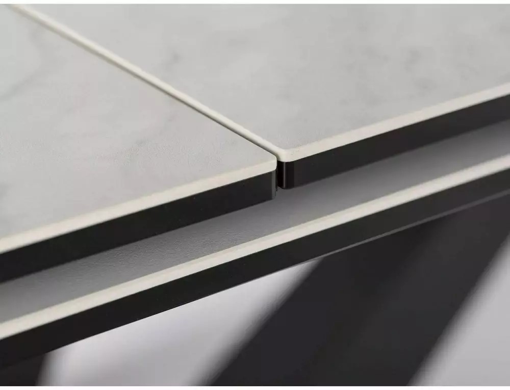 Stół SORENTO Ceramic Nature Cloud to nowoczesny mebel, który łączy w sobie elegancję i funkcjonalność. Jego rozkładany blat wykonany jest z hartowanego szkła oraz ceramiki Nature Cloud, co nadaje mu wyjątkowy wygląd i zapewnia trwałość. Stelaż stołu wykonany z metalu w kolorze czarnym matowym gwarantuje stabilność i wytrzymałość konstrukcji.