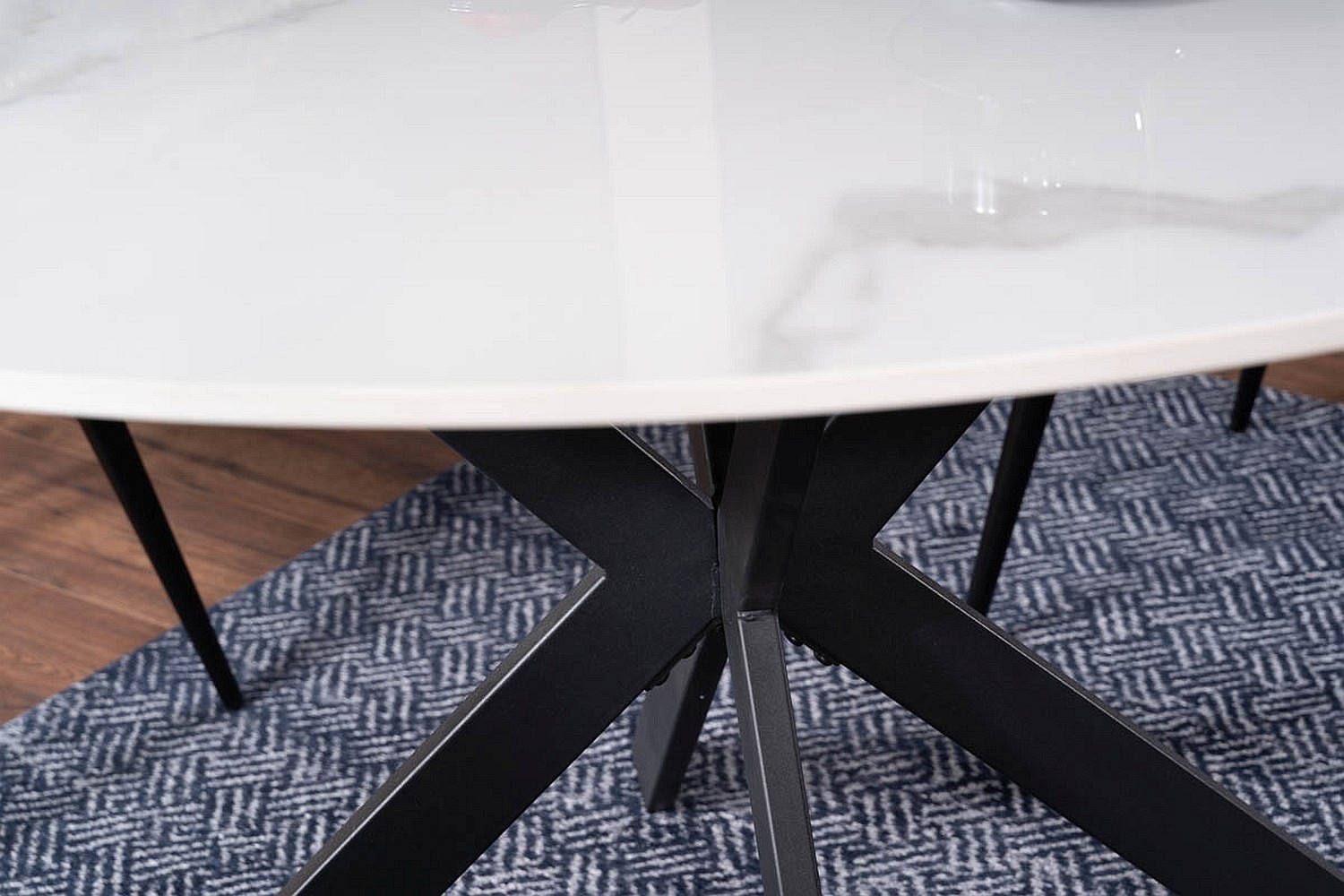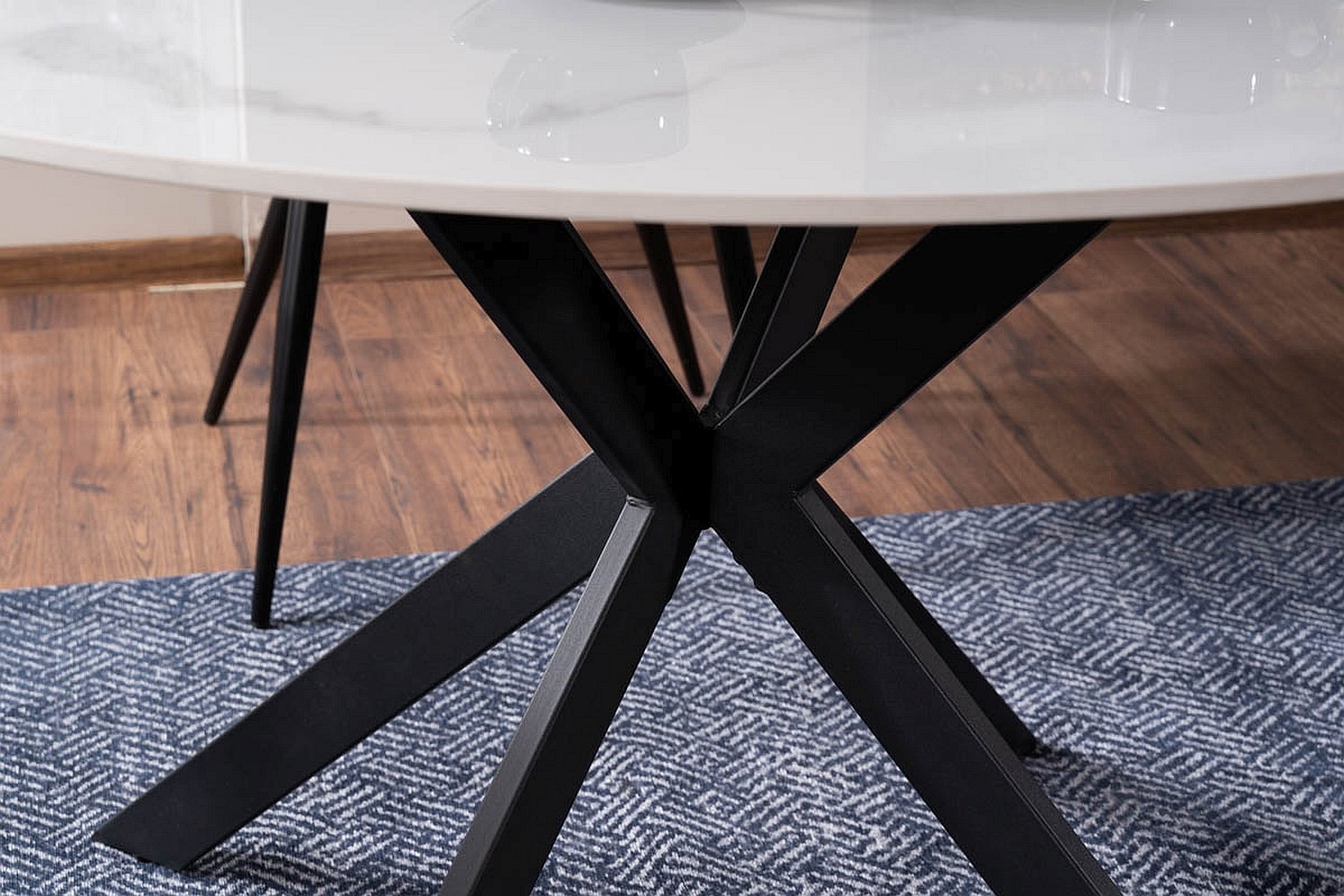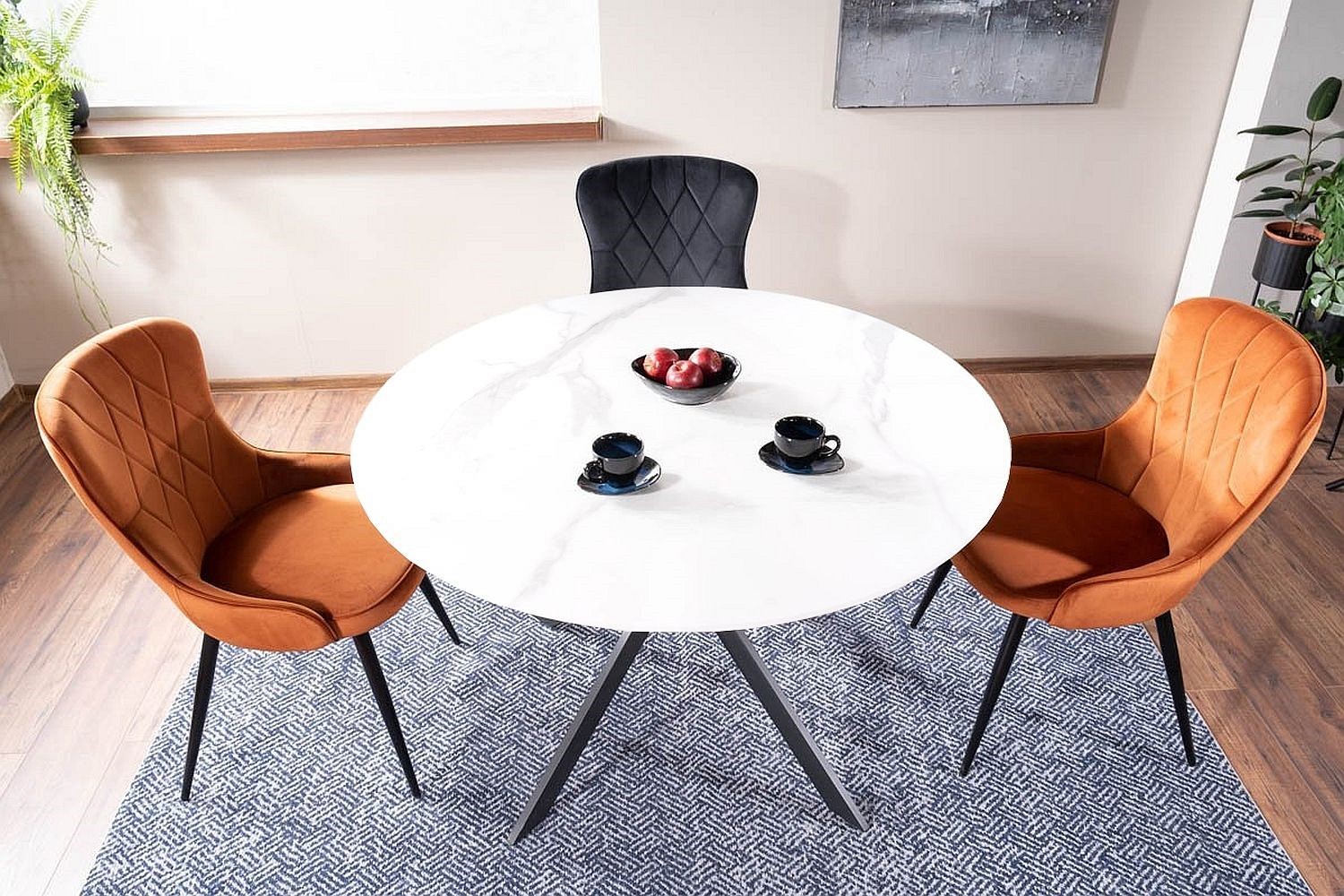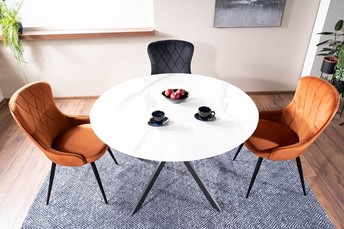 Stół o nazwie Talia to nowoczesny mebel, który świetnie wpisze się zarówno w nowoczesne, jak i klasyczne wnętrza. Stół posiada okrągły blat, o średnicy 120cm. Blat stołu wykonany jest z wysokogatunkowego ceramiki, który jest odporny na zarysowania i uszkodzenia. Stelaż stołu wykonany jest z trwałego, stalowego materiału w kolorze czarnym. Jest on wyposażony w podporę, która zapewnia stabilność i wygodę użytkowania. Stół Talia to także mebel, który idealnie wpasowuje się w różne aranżacje wnętrza. Dzięki swojemu minimalistycznemu designowi nadaje on charakteru i elegancji każdemu pomiesczeniu.