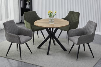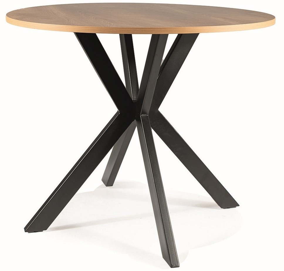 Stół Talia II to idealne rozwiązanie do niedużego wnętrza. Blat wykonany został z wytrzymałej płyty MDF odpornej na zarysowania i uszkodzenia. Blat imitujący drewno jest ponadczasowy i świetnie sprawdzi się w niemal każdym wnętrzu. Okrągły stół Talia posiada czarne metalowe nogi, które stanowią bardzo wytrzymałą i stabilną podporę.