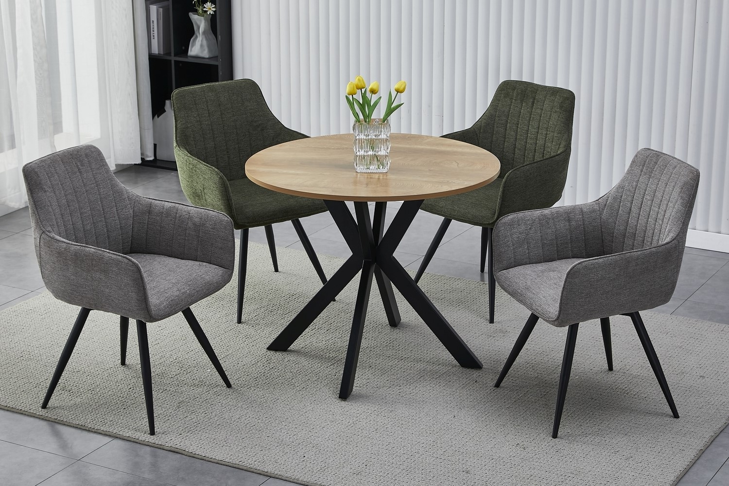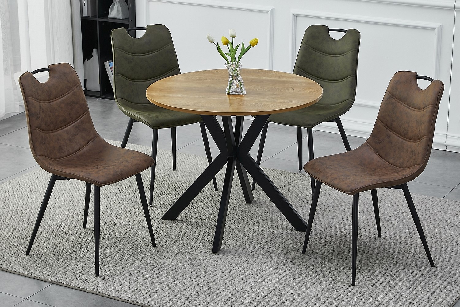 Stół Talia II jest nie tylko praktyczny, ale również estetyczny. Jego minimalistyczny design doskonale wpasuje się w nowoczesne wnętrza. To mebel, który może stanowić centralny punkt w jadalni lub pokoju dziennym. Dzięki swoim kompaktowym wymiarom, nie zajmuje zbyt wiele przestrzeni, a jednocześnie oferuje wygodne miejsce do spożywania posiłków czy pracy. Czarne nogi dodają mu elegancji, a blat imitujący drewno nadaje mu ciepłego charakteru.