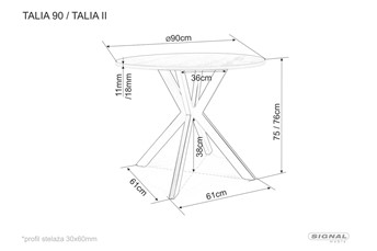 Stół Talia II to idealne rozwiązanie do niedużego wnętrza. Blat wykonany został z wytrzymałej płyty MDF odpornej na zarysowania i uszkodzenia. Blat imitujący drewno jest ponadczasowy i świetnie sprawdzi się w niemal każdym wnętrzu. Okrągły stół Talia posiada czarne metalowe nogi, które stanowią bardzo wytrzymałą i stabilną podporę.