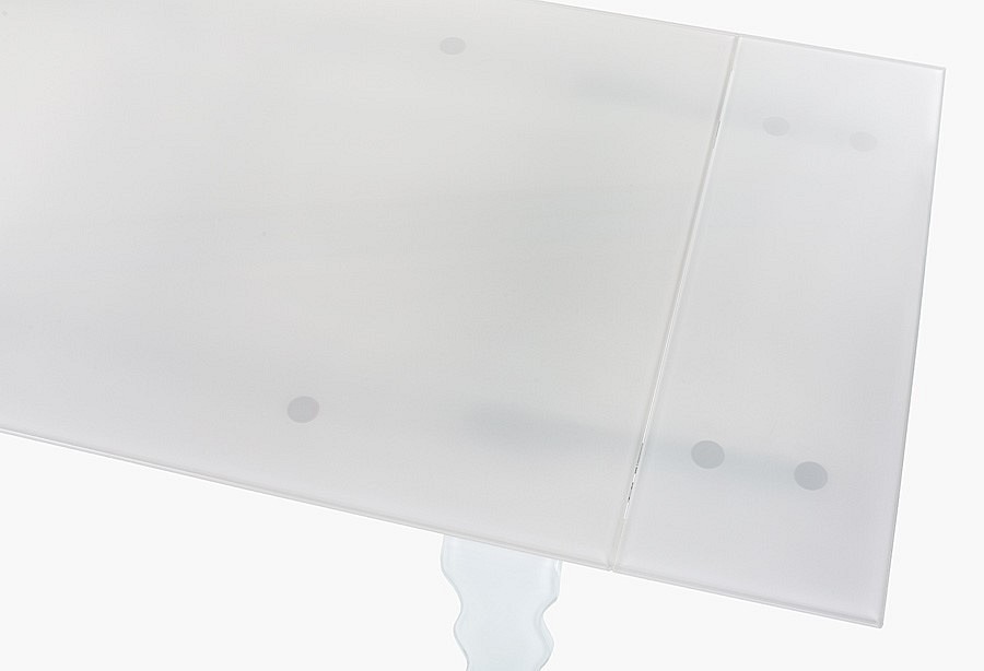 Blat i falowane nogi stołu wykonane zostały ze szkła, blat o grubości 10 mm, nogi 20 mm. Blat i nogi wykonane są ze szkła OPTI WHITE, hartowanego, fazowanego, polerowanego i szlifowanego na krawędziach. Blat oraz nogi lakierowane od spodu na kolor biały RAL 9003 Rozstaw nóg: 145 cm Waga netto 1 szt.: 120 kg Waga opakowania: 145 kg Maksymalna ilość szt. w opakowaniu: 1 Sposób wysyłki: Paleta Produkt do samodzielnego montażu: Tak