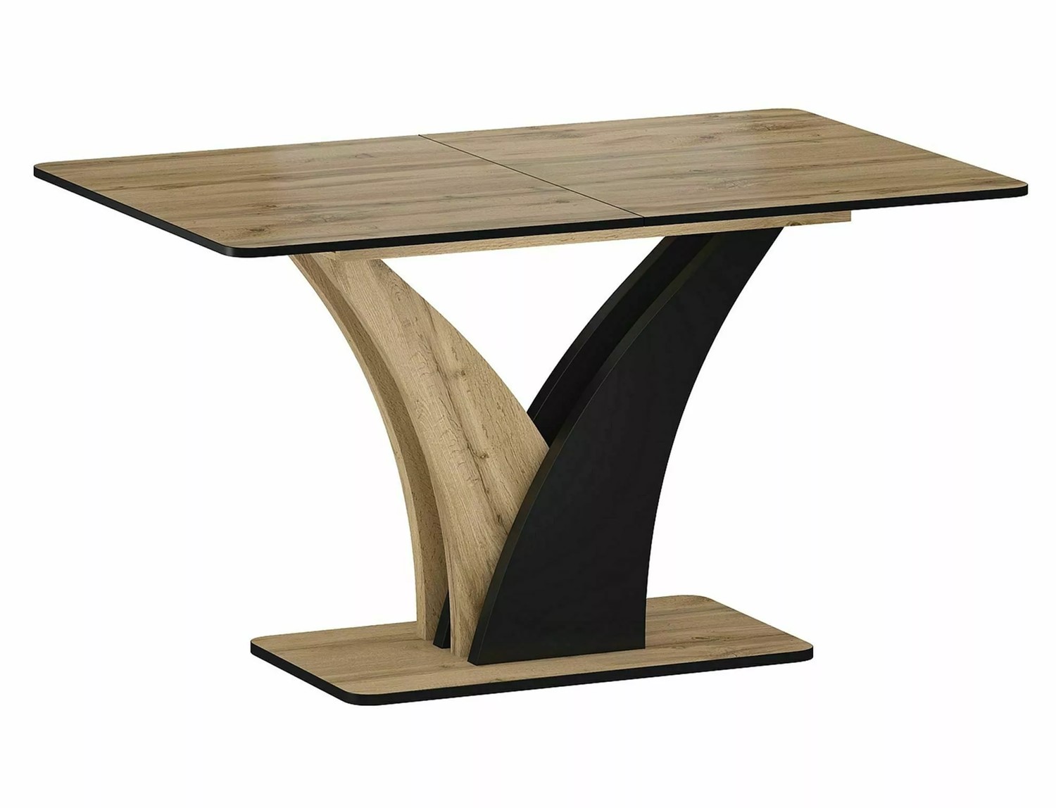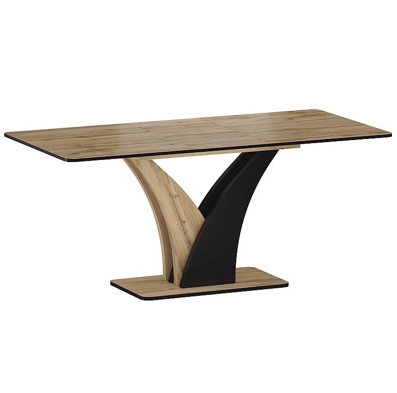 Design stołu VENTO jest uniwersalny, dzięki czemu doskonale komponuje się z różnymi stylami – od klasycznego po nowoczesny. Dwukolorowe wykończenie – połączenie Dąb Artisan z czernią – dodaje meblowi charakteru i sprawia, że staje się on centralnym punktem każdego pomieszczenia.