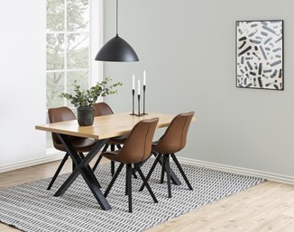 Stół Wales Cross to elegancki mebel, który doskonale wpasuje się w różne aranżacje wnętrz. Jego prostokątny kształt o wymiarach 160x90 cm sprawia, że jest idealny do jadalni czy salonu, oferując wystarczająco miejsca dla rodziny i gości. Blat wykonany z naturalnego dębu charakteryzuje się nie tylko estetyką, ale i trwałością, a czarne nogi dodają nowoczesnego akcentu i kontrastują z jasnym drewnem.Dzięki solidnej konstrukcji stół jest stabilny i odporny na codzienne użytkowanie. Naturalne wykończenie dębu podkreśla piękno drewna, a jego kolorystyka sprawia, że mebel jest wszechstronny i można go łatwo zestawić z innymi elementami wyposażenia wnętrza.