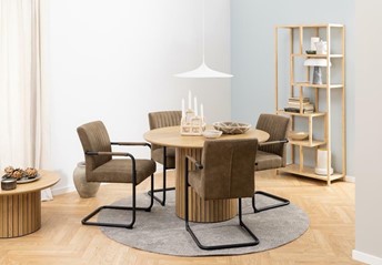 Stół Yale o średnicy 120 cm w kolorze dębu to doskonały wybór dla osób, które cenią sobie elegancję i funkcjonalność w wystroju wnętrz. Okrągły kształt sprawia, że stół doskonale sprawdzi się zarówno w małych przestrzeniach, jak i w większych jadalniach. Drewno dębowe jest znane ze swojej trwałości i odporności na uszkodzenia, co czyni go idealnym materiałem do codziennego użytku. Dodatkowo, stół w kolorze dębu wprowadza ciepło do wnętrza i łatwo łączy się z różnorodnymi stylami aranżacyjnymi – od klasycznych po nowoczesne. Można go zestawiać z różnymi krzesłami, co pozwala na stworzenie indywidualnej kompozycji.