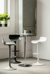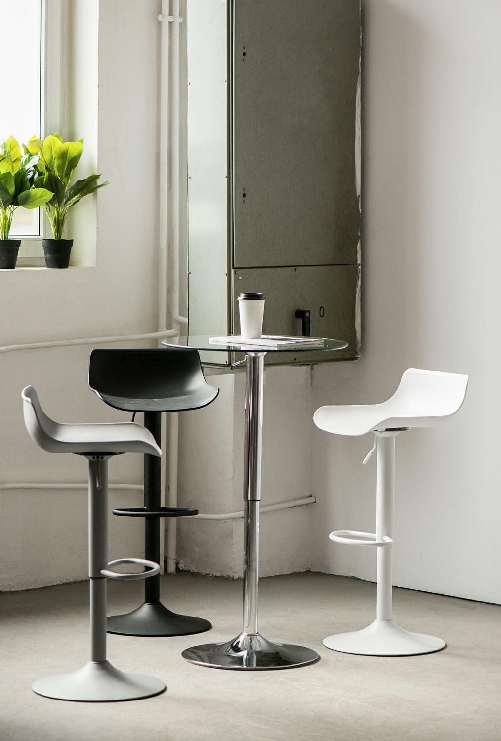 Nowoczesny stołek barowy Bar One marki Simplet to doskonałe rozwiązanie do restauracji, barów czy hotelowych pomieszczeń. Minimalistyczny stołek barowy Bar One posiada regulacjię wysokości siedziska w zakresie 21cm, wygodną podpórkę na nogi oraz obrotowe siedzisko. Wszystkie te cechy sprawiają, że stołek jest niezwykle funkcjonalny- możesz dopasować jego wysokość siedziska do każdej wysokości blatu. Dodatkową zaletą jest matowe wykończenie, które dodaje elegancji i stylu. Stołek barowy Bar One Simpet dostępny jest również w innych wersjach kolorystycznych. Sprawdzi się doskonale w barze, restauracjach, hotelowych holach ale również domowych jadalniach z barowym blatem. Maksymalne obciążenie stołka to 120kg. Wymaga montażu, nie do użytku zewnętrznego. Wys. siedziska: 56cm/77cm Gł. siedziska: 30cm Szer. siedziska: 43cm Max. ilość sztuk w kartonie:2 Wymiary kartonu:46cm x 46cm x 37cm
