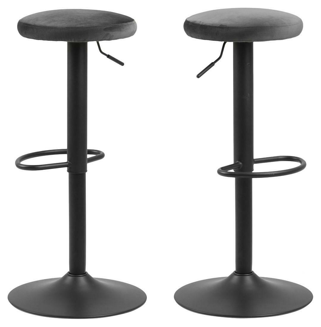 Stołek barowy Finch idealnie pasuje do nowoczesnej wyspy kuchennej, baru lub pubu. Siedzisko stołka obszyte jest miękką welwetową tkaniną w kolorze ciemnoszarym. Dzięki zastosowaniu metalu stołek jest bardzo trwały i uniwersalny. Stylowa metalowa noga tworzy z siedziskiem ciekawe połączenie. W połowie wysokości nogi został umieszczony efektowny podnóżek. Siedzisko jest obrotowe oraz ma regulowaną wysokość. Podstawa stołka jest malowana proszkowo na czarno.