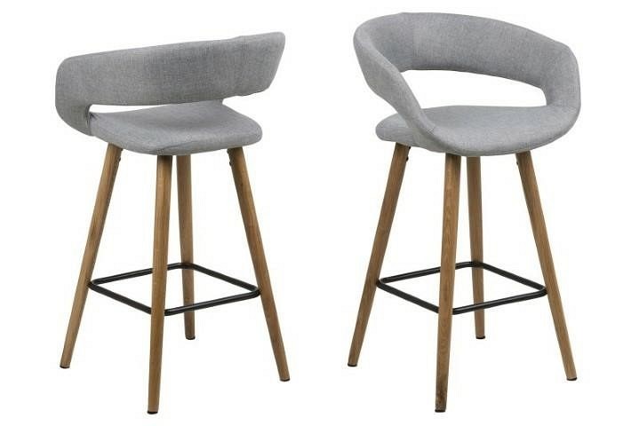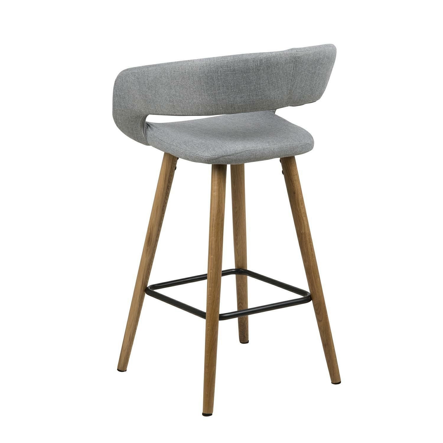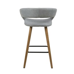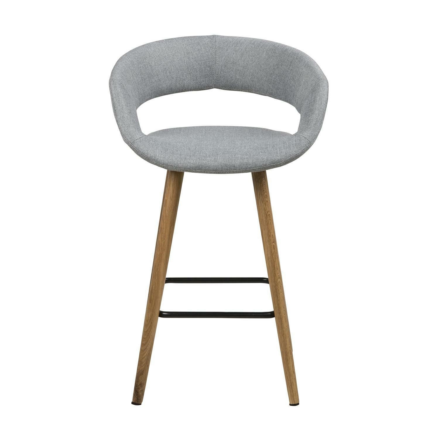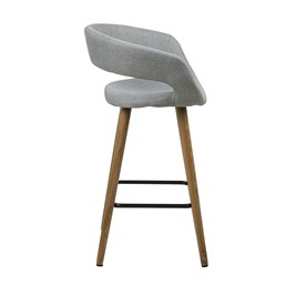 Stołek barowy Grace to doskonałe rozwiązanie do otwartej kuchni czy jadalni z wysoką wyspą. Siedzisko tapicerowane zostało wysokiej jakości tkaniną w kolorze jasnej szarości. Podstawę stanowią dębowe nogi dodatkowo pokryte warstwą oleju, która uwydatnia walory drewna.