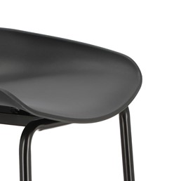 Stołek barowy Grego to piękny element aranżacyjny, który sprawdzi się przy wsypie w Twojej kuchni lub jadalni, nadając jej nowoczesnego charakteru. Wyprofilowane siedzisko okala nasze ciało, aby zagwarantować stabilną i wygodną postawę podczas siedzenia. Czarne siedzisko z trwałego polipropylenu, który jest niezwykle odpornym tworzywem, spoczywa na czarnej metalowej podstawie, zapewniającej konstrukcji stabilne podparcie. Stołek wyposażony jest również w wygodną podpórkę na nogi, dzięki której użytkowanie będzie jeszcze bardziej komfortowe.