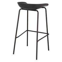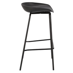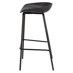 Stołek barowy Grego 75cm to piękny element aranżacyjny, który sprawdzi się przy wsypie w Twojej kuchni lub jadalni, nadając jej nowoczesnego charakteru. Wyprofilowane siedzisko okala nasze ciało, aby zagwarantować stabilną i wygodną postawę podczas siedzenia. Czarne siedzisko z trwałego polipropylenu, który jest niezwykle odpornym tworzywem, spoczywa na czarnej metalowej podstawie, zapewniającej konstrukcji stabilne podparcie. Stołek wyposażony jest również w wygodną podpórkę na nogi, dzięki której użytkowanie będzie jeszcze bardziej komfortowe.