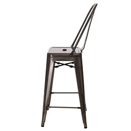Wykonany z proszkowo malowanego metalu stołek barowy Paris Back to nowatorska propozycja dla wszystkich miłośników designu. Stalowy, ręcznie wykonany hoker o przemysłowej formie doda uroku Twojemu domowemu kącikowi relaksu. Dzięki wyprofilowanemu oparciu, stołek daje gwaracnję wygody siedzenia podczas długich rozmów w gronie przyjaciół. Stołek barowy posiada elementy rdzy oraz lekkie przetarcia, któtre dodatkowo dodają charakteru.