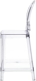 Stołek barowy Viki transparentny to nowoczesny i elegancki mebel, który doskonale wpasuje się w różnorodne wnętrza. Wykonany z wysokiej jakości tworzywa, a jego transparentność nadaje mu eleganckiego, a zarazem niepowtarzalnego wyglądu. Zaokrąglona góra oparcia pięknie komponuje się z kwadratowym siedziskiem co nadaje mu stylową całość.Stołek Viki jest nie tylko estetyczny, ale także funkcjonalny. Pomimo swojej delikatności stołek jest wytrzymały i wygodny