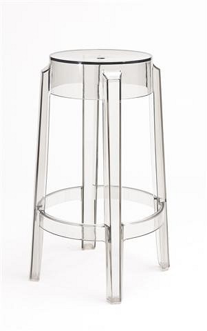 Przezroczysty stołek barowy. Nie zajmuje miejsca w przestrzeni. Jest idealnym uzupełnieniem kolekcji krzeseł transparentnych. Stołek dostępny jest również w wersji niskiej i wysokiej.Maksymalne obciążenie wynosi 120kg