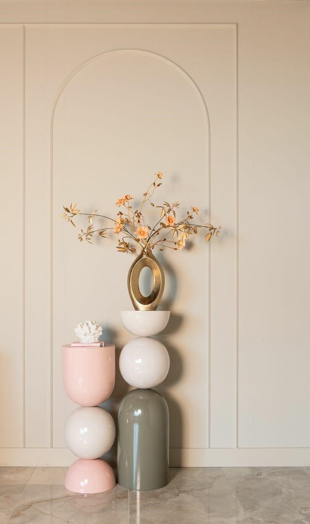 Kolumna/stolik Alva to wyjątkowy element, który wnosi nowoczesność i subtelną elegancję do każdego wnętrza. Jej pastelowa kolorystyka biało-różowa dodaje lekkości i świeżości, a metalowa konstrukcja zapewnia trwałość. Alva świetnie sprawdzi się jako funkcjonalny stolik lub miejsce do wyeksponowania dekoracji, wnosząc do przestrzeni odrobinę luksusu i stylu.