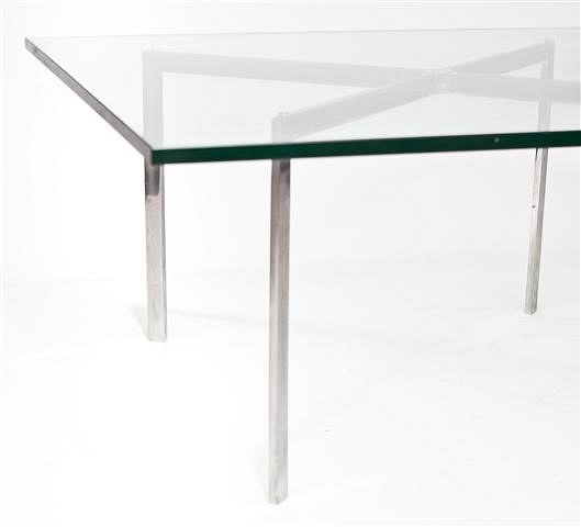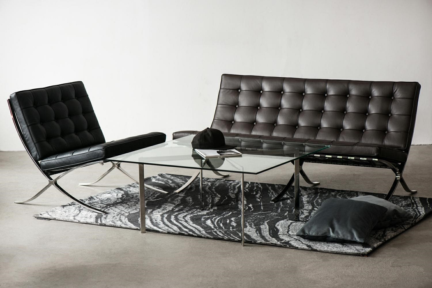 Kolekcja Barcelona powstała w 1929 roku. Stolik jest uzupełnieniem całej kolekcji Barcelona w skład której wchodzi fotel Barcelona i podnóżek Barcelona. Baza wykonana z polerowanego aluminium. Szkło blatu ma 12 mm grubości.,Prezentowany produkt jest inspirowany projektem stolika Barcelona.