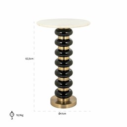Stolik Barbara to luksusowy mebel, który łączy wyrafinowaną estetykę z praktycznością. Biżuteryjna podstawa wykonana z wysokiej jakości szkła i aluminium przyciąga uwagę, a marmurowy blat nadaje wnętrzu klasycznego uroku. Ten stolik nie tylko spełnia funkcję użytkową, ale również stanowi efektowną dekorację, doskonale komponując się z luksusowymi i nowoczesnymi wnętrzami. Idealny wybór dla osób ceniących unikatowe, eleganckie detale.