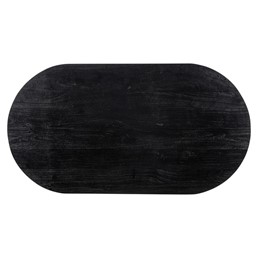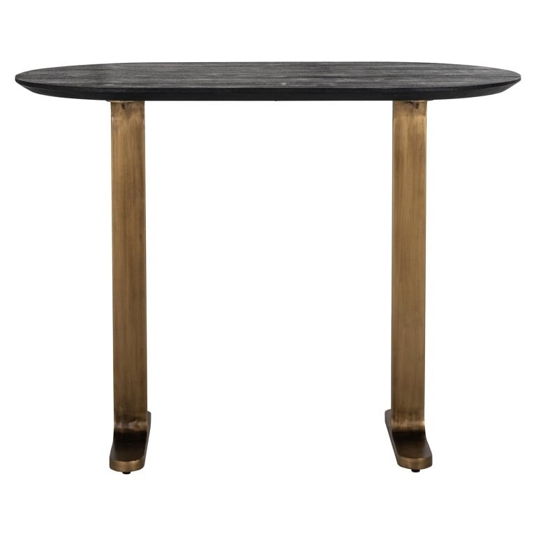 Piękny, owalny blat wykonano z drewna Mango a mosiężną podstawę ze stali w kolorze matowego złota.