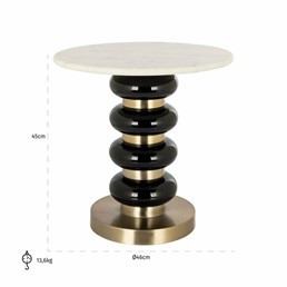 Stolik Boann to elegancka dekoracja w formie mebla, która wyróżnia się pięknym wykonaniem i wyrafinowanym stylem. Marmurowy blat nadaje mu ponadczasowego uroku, a szklano-aluminiowa podstawa zachwyca biżuteryjną estetyką. Doskonały wybór dla osób, które chcą wzbogacić swoje wnętrze luksusowym akcentem.
