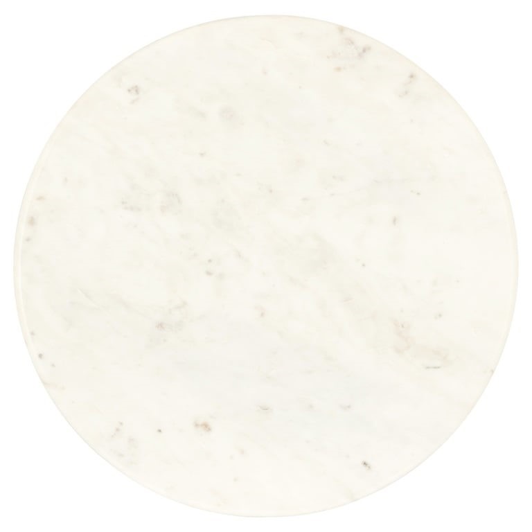 - Okrągły blat z białego marmuru, dodający wnętrzu klasycznej elegancji