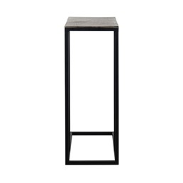 Stolik boczny Calloway to model wykonany z wysokiej jakości materiałów w połączeniu czarnej i szarej barwy. Jest on wyposażony w czarne żelazne nogi, które gwarantują wytrzymałość i stabilność. Stolik posiada szary blat wykonany z aluminium, który nadaje mu elegancki wygląd. Stolik boczny Calloway może być wykorzystany do wyeksponowania dekoracji, dekoracji i drobnych przedmiotów, a także do postawienia kubka lub książki. Jest to idealny dodatek do każdego wnętrza, w którym można umieścić dodatkowe przedmioty.