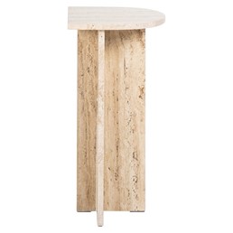 Stolik Costello to wyjątkowy mebel, który wyróżnia się prostym, ale eleganckim designem. Wykonany z kamienia trawertyn, jego naturalna tekstura i ciepła barwa przyciągają wzrok, wprowadzając do wnętrza subtelną elegancję. Dzięki ponadczasowemu wykończeniu, stolik nie tylko wpisuje się w aktualne trendy, ale również będzie zachwycać przez lata. To idealny wybór do nowoczesnych aranżacji, które wymagają wyjątkowego akcentu naturalnego luksusu.