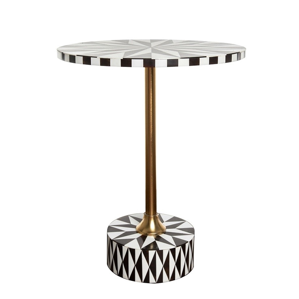 Stolik Domero Star 40 to wyjątkowy mebel, który wyróżnia się geometrycznym wzorem oraz subtelną kolorystyką w odcieniach bieli i brązu. Złote akcenty dodają mu elegancji, a ręczne wykonanie ze stali pokrytej mosiądzem oraz płyty MDF zapewnia nie tylko trwałość, ale i luksusowy wygląd. Dzięki praktycznym wymiarom, stolik doskonale wpasowuje się w nowoczesne aranżacje, dodając pomieszczeniu modny i wysmakowany charakter. Domero Star to idealny sposób na zaakcentowanie wnętrza i nadanie mu wyjątkowego stylu.