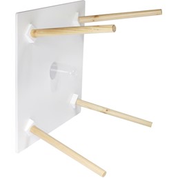 Stolik spoczywa na jasnych sosnowych nogach, co nadaje mu lekkości i naturalnego wyglądu. Jest lekki i łatwy do przenoszenia, co sprawia, że można go swobodnie przestawiać w zależności od potrzeb. Dzięki swojej funkcjonalności i estetyce, stolik ten będzie świetnym dodatkiem do pokoju zabaw każdego dziecka.