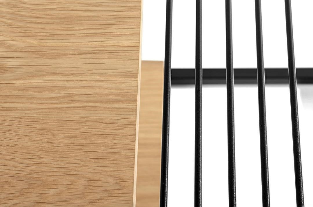 Galler to praktyczny stolik z dwoma blatami i gazetnikiem. Blaty wykonane są z MDF-u o grubości 1,8 cm., oklejonego dębowym fornirem. Podstawa wykonana z metalu, lakierowanego proszkowo na kolor czarny matowy. Na górnym blacie umieszczono poprzeczki, na których można zawiesić gazety lub magazyny. Galler doskonale sprawdzi się pomieszczeniach w stylu nowoczesnym lub skandynawskim. Będzie praktycznym dodatkiem w salonie. Waga netto: 10 kg Waga z opakowaniem: 12 kg Maksymalna ilość szt. w opakowaniu: 1 Sposób wysyłki: Paczka Wymiary opakowania: 57 cm x 57 cm x 20 cm Produkt do samodzielnego montażu: Tak