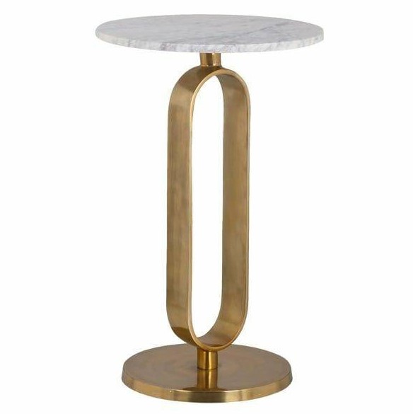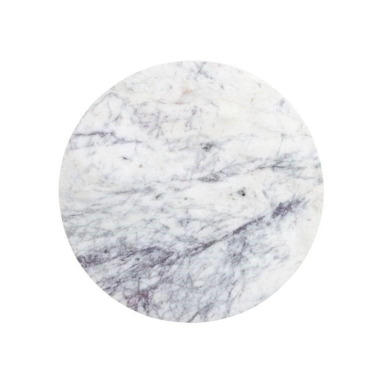 - Okrągły blat zdobi elegancki marmurowy blat.