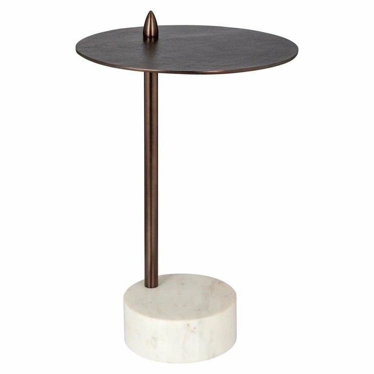 Piękny, aluminiowy blat w połączeniu z białą marmurową podstawą doskonale sprawdzi się w nowoczesnych wnętrzach.