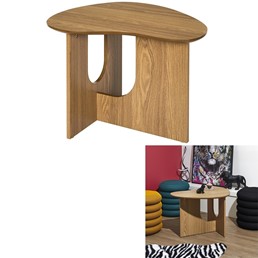 Stolik kawowy Calypso to harmonijne połączenie funkcjonalności i estetyki. Jego naturalne wykończenie wprowadza do wnętrza ciepło, a owalny blat zapewnia wygodę użytkowania. Stabilna podstawa gwarantuje trwałość i bezpieczeństwo podczas codziennego użytkowania.