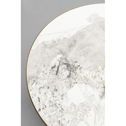 Stolik kawowy Cono Ceramic 70 to harmonijne połączenie nowoczesnego designu z elegancją i naturalnym urokiem. Blat z białej kamionki, ozdobiony subtelnym szarym marmurkowaniem i pokryty ochronną glazurą, wprowadza do wnętrza delikatność i wyrafinowanie. Ciemnobrązowa, stożkowata podstawa, imitująca strukturę drewna, dodaje ciepła, natomiast złote akcenty ze stali powlekanej tytanem podkreślają luksusowy charakter stolika. To doskonały wybór dla osób szukających stylowego i funkcjonalnego elementu, który wzbogaci każde wnętrze o ponadczasowy szyk