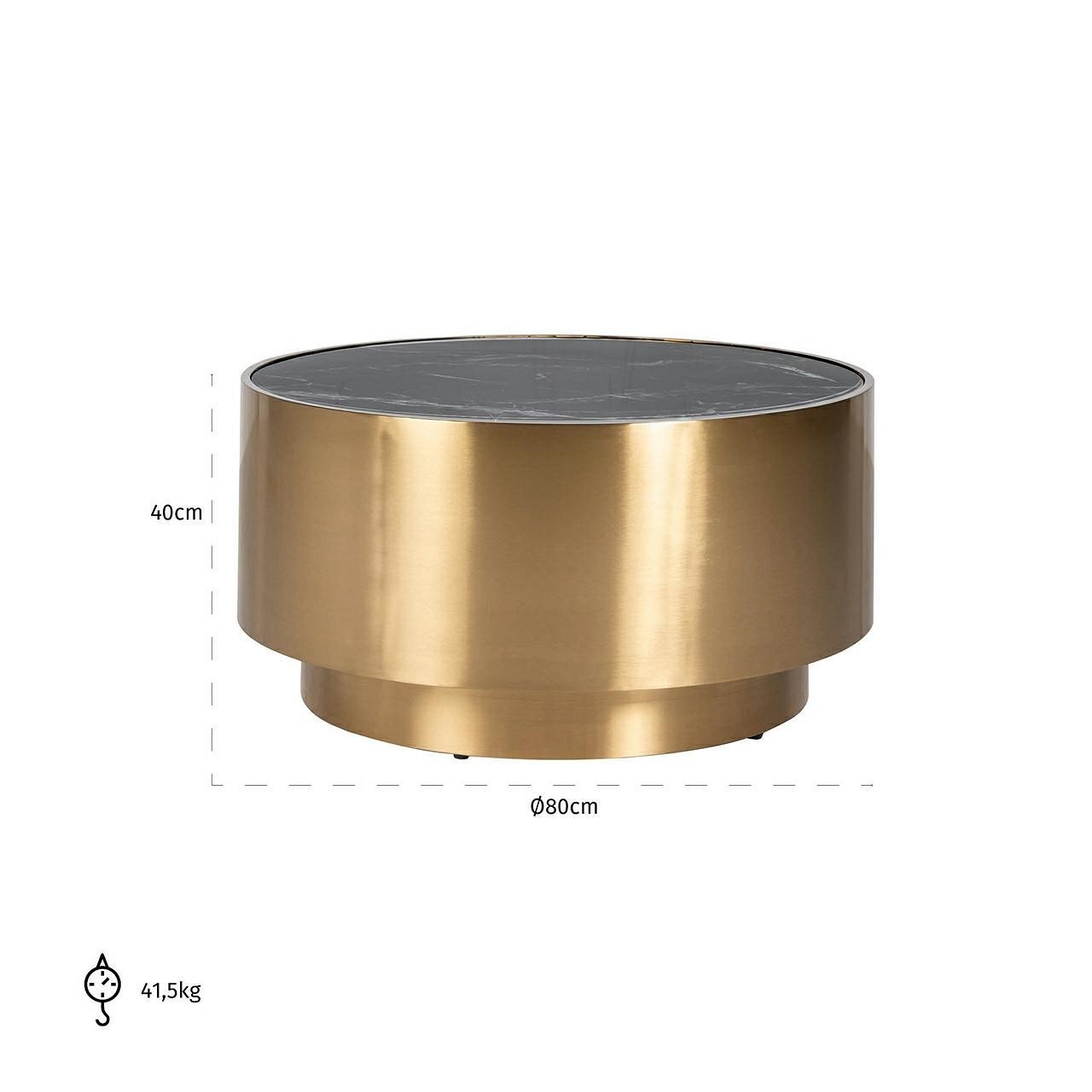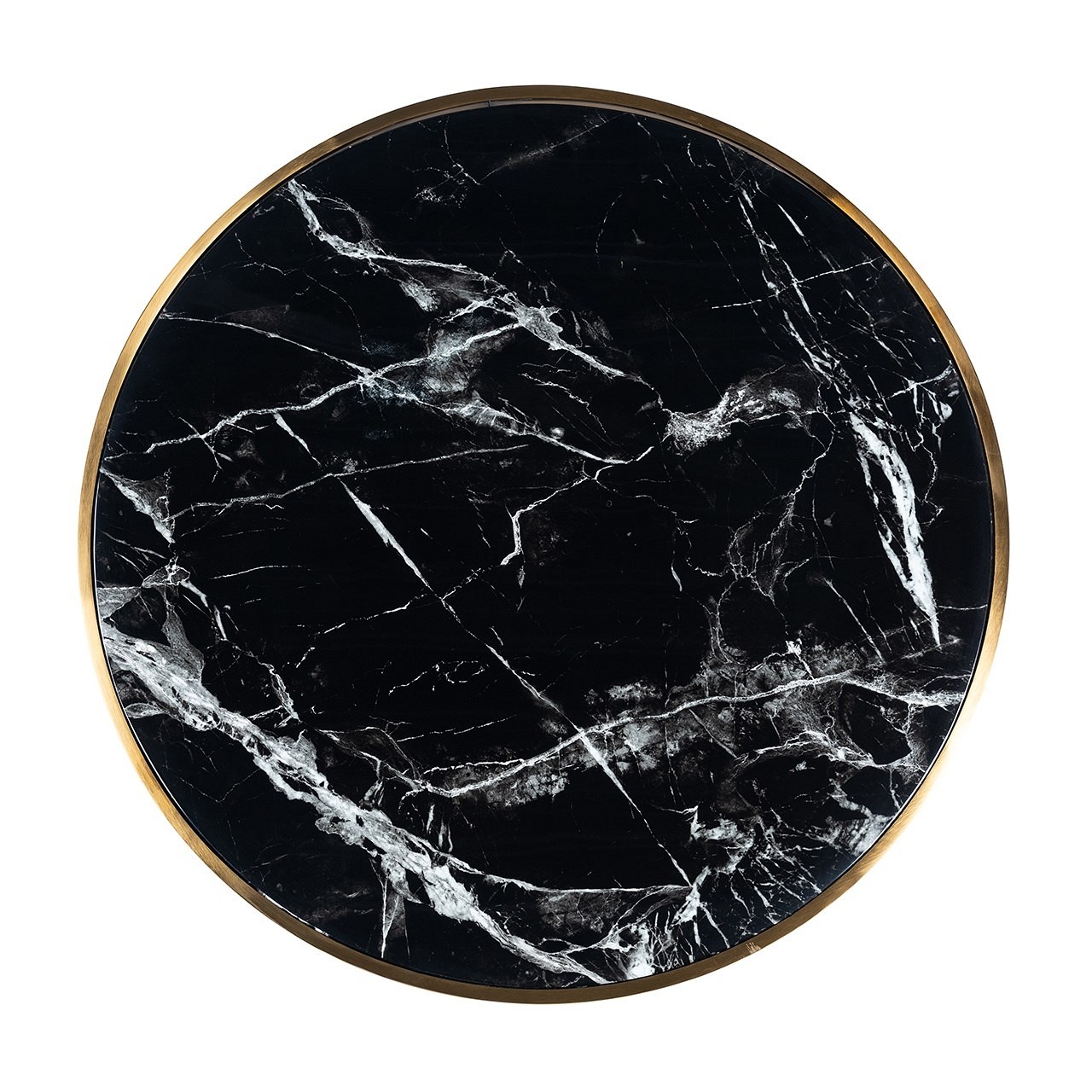 Ten stolik kawowy to idealne połączenie prostoty i elegancji. Wykonany jest z zaokrąglonego, błyszczącego metalu w kolorze złotej stali. Stolik ma idealne wymiary do przechowywania kubków i filiżanek, a jego minimalistyczny wygląd jest świetnym dodatkiem do każdego pomieszczenia. Stolik posiada odporną na uszkodzenia powierzchnię, co czyni go wytrzymałym i trwałym. Okrągły blat zrobiono z wysokiej jakości konglomeratu imitującego marmur. Idealny dodatek do salonu