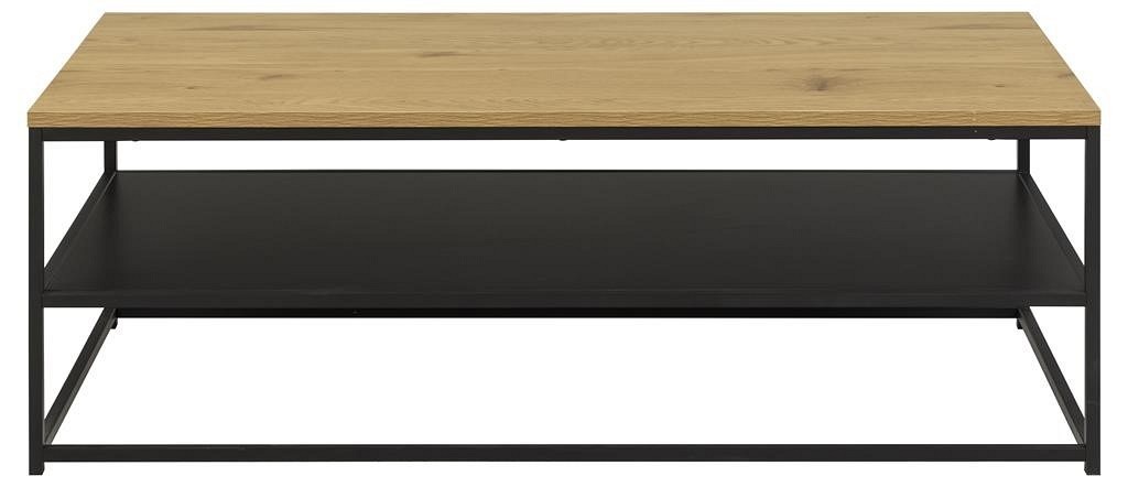 Stolik kawowy Gila w nowoczesnym i industrialnym stylu. Idealny do salonu, sypialni czy holu. Posiada prostokątny blat z płyty MDF z fornirem dębowym i czarną półkę pod spodem. W całości oparty na konstrukcji metalowej, malowany proszkowo na czarno. Dobrze zaprojektowana konstrukcja zapewnia wyjątkową stabilność.
