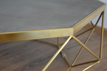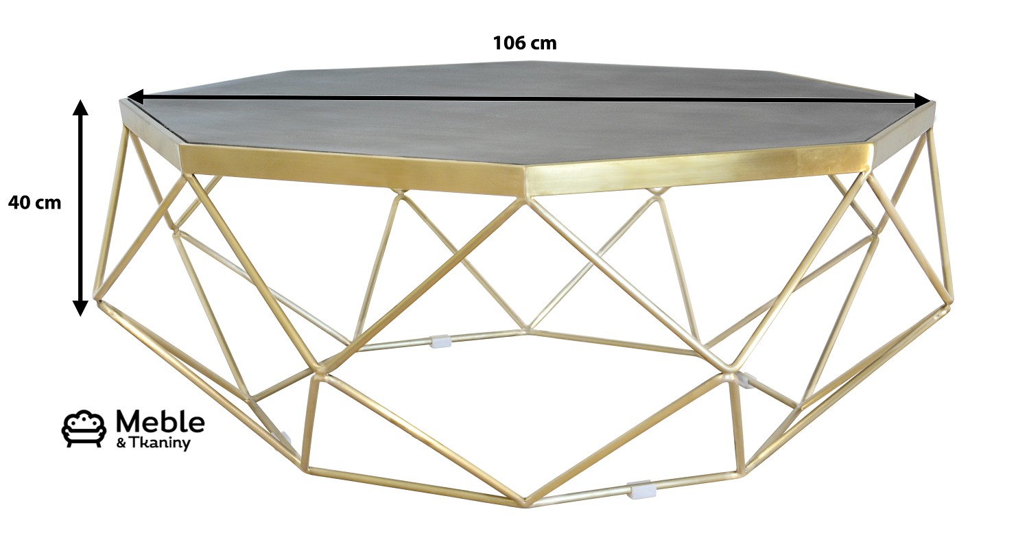 Geometryczy, elegancki szał. Ława kawowa w stylu glamour z dużym blatem idealnie sprawdzi sie w Twoim salonie. Połączenie złotej konstrukcji ze srebrno-szarym blatem uczyni z niej królową Twojego wnętrza. Jesteś gotowy na takie szaleństwo?