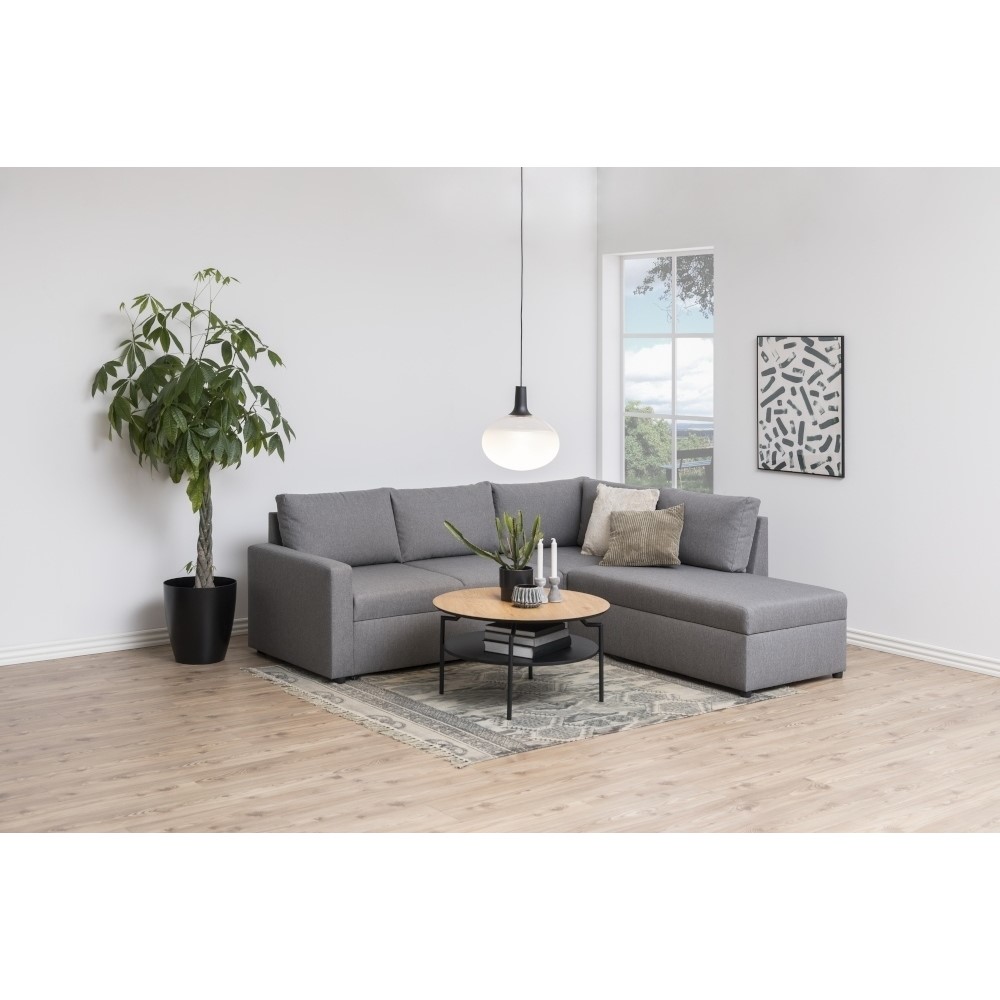 Stolik kawowy Goldington w kolorze naturalnego dębu to elegancki i funkcjonalny mebel, idealny do nowoczesnych wnętrz. Blat stolika wykonany jest z płyty MDF, pokrytej okleiną imitującą naturalny dąb, co nadaje mu ciepły i przytulny wygląd. Pod blatem znajduje się dodatkowa półka, która oferuje dodatkową przestrzeń do przechowywania książek, czasopism czy pilotów.