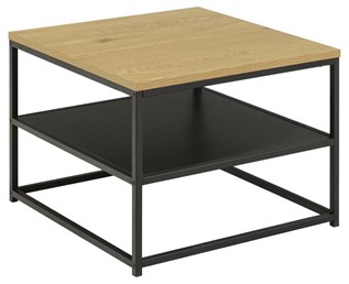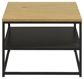 Stolik kawowy Gila w nowoczesnym i industrialnym stylu. Idealny do salonu, sypialni czy holu. Posiada prostokątny blat z płyty MDF z fornirem dębowym i czarną półkę pod spodem. W całości oparty na konstrukcji metalowej, malowany proszkowo na czarno. Dobrze zaprojektowana konstrukcja zapewnia wyjątkową stabilność.