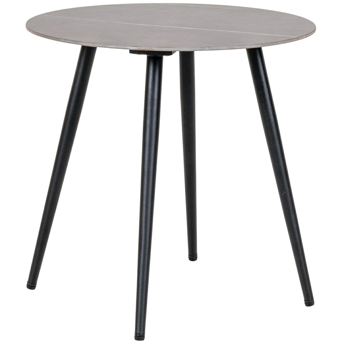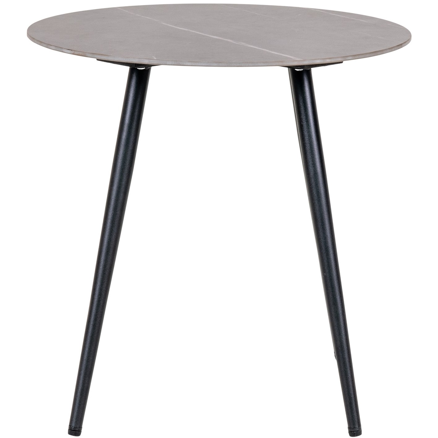 Stolik kawowy Lazio szary/czarny to elegancki i nowoczesny mebel, idealny do minimalistycznych wnętrz. Jego okrągły blat wykonany jest z ceramiki imitującej marmur, co nadaje mu luksusowy wygląd. Blat ma średnicę 45 cm, co czyni go praktycznym miejscem na filiżankę kawy czy książkę.