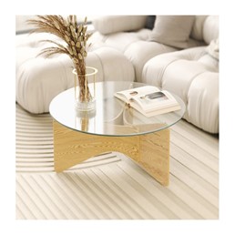 Stolik kawowy MADERA to elegancki i nowoczesny mebel. Podstawa stolika została wykonana z połączenia drewna jesionowego i eukaliptusowego. Szklany blat, umieszczony na górnej części stolika, dodaje mu lekkości i elegancji. Transparentna powierzchnia szkła pozwala podziwiać naturalne piękno drewna, jednocześnie ułatwiając utrzymanie czystości. To idealne rozwiązanie dla tych, którzy poszukują połączenia naturalności, elegancji i funkcjonalności w swoim salonie czy pokoju dziennym.
