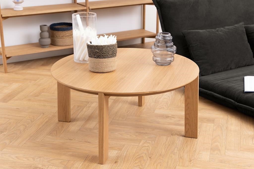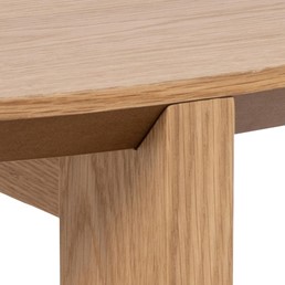 Maxine to stolik kawowy w duchu minimalizmu. Posiada zaokrąglony blat z forniru dębowego, osadzony na podstawie składającej się z czterech nóg wykonanych z tego samego materiału. Nogi stołu są masywne, ale aranżacja wydaje się lekka. Idealny stół do salonu lub poczekalni.