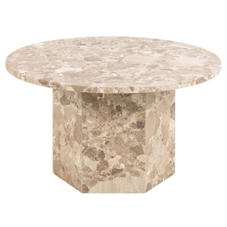 - Okrągły stolik kawowy z matowego marmuru lakierowanego w kolorze latte brown