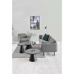 Stolik kawowy Soli 65 to elegancki mebel, który doskonale wpasuje się w nowoczesne wnętrza. Jego okrągły blat wykonany jest z ceramiki oraz szkła w kolorze szarym, co nadaje mu wyjątkowy wygląd. Podstawa stolika, wykonana z czarnego metalu, ma matowe wykończenie i rozszerza się ku dołowi, co zapewnia stabilność i trwałość.