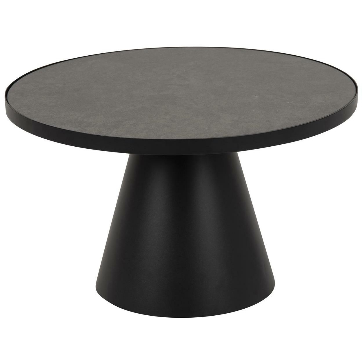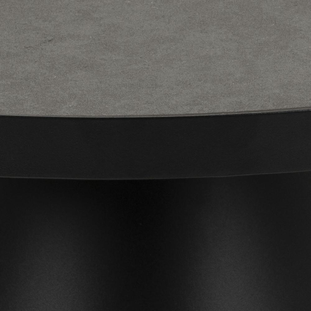 Stolik kawowy Soli 85 to elegancki i nowoczesny mebel, który doskonale wpasuje się w różnorodne wnętrza. Jego okrągły blat wykonany jest z ceramiki oraz szkła w kolorze szarym, co nadaje mu wyjątkowy wygląd. Podstawa stolika, wykonana z czarnego metalu, ma matowe wykończenie i rozszerza się ku dołowi, co zapewnia stabilność i trwałość.