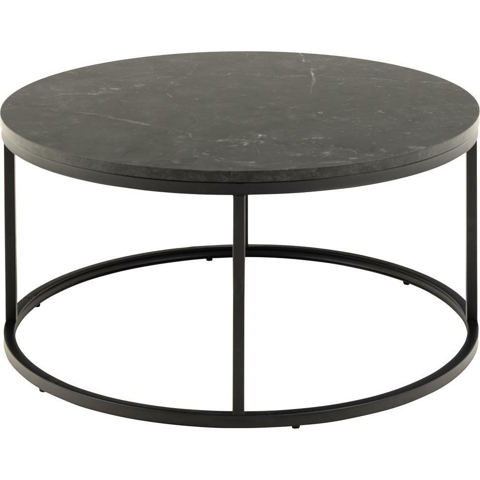 Stolik kawowy Spiro w kolorze czarnym to elegancki i nowoczesny mebel, który doskonale wpisuje się w różnorodne aranżacje wnętrz. Blat stolika wykonany jest z płyty melaminowanej, imitującej czarny marmur, co nadaje mu luksusowego wyglądu. Solidna, metalowa podstawa malowana proszkowo zapewnia stabilność i trwałość, a jej czarny kolor harmonizuje z blatem, tworząc spójną całość.