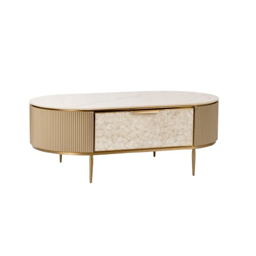 Stolik kawowy Stilig ST907 łączy estetykę nowoczesnego designu z wysoką praktycznością. Został wyposażony w ukrytą szufladę, dzięki której łatwo utrzymać porządek w salonie. Ryflowany front oraz naturalne kolory mebla nadają mu elegancki wygląd, który przyciąga wzrok i pasuje do wielu aranżacji. Sprawdzi się zarówno w minimalistycznych, jak i bardziej klasycznych przestrzeniach. Stabilna konstrukcja i przemyślany układ sprawiają, że ST907 to nie tylko stolik, ale i funkcjonalny element wystroju.