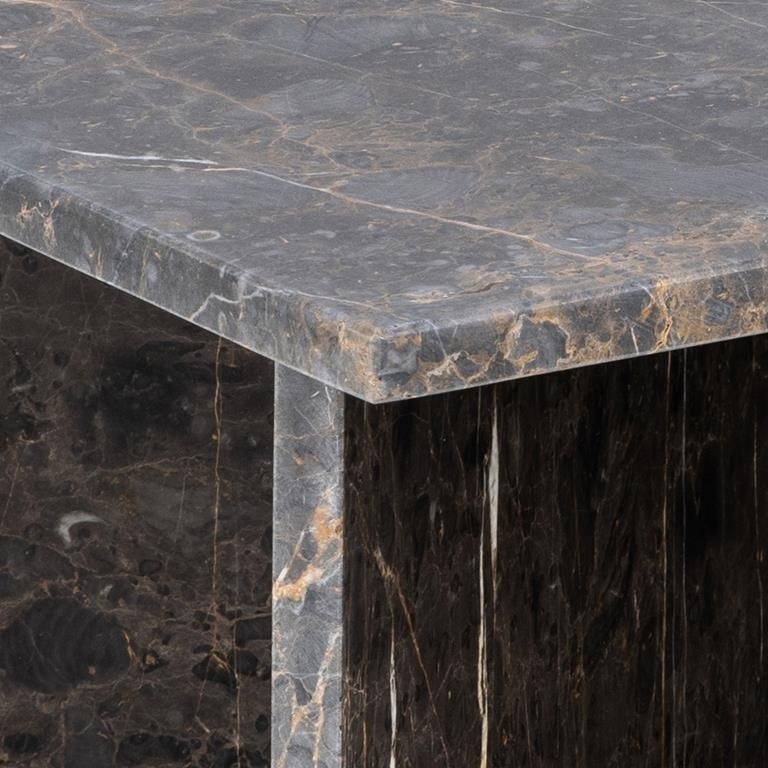 Stolik kawowy Vega w kolorze brązowym to elegancki i nowoczesny mebel, który doda wyrafinowania każdemu salonowi. Blat wykonany z tureckiego marmuru charakteryzuje się naturalnym żyłkowaniem, co sprawia, że każdy egzemplarz jest unikalny. Kwadratowy kształt blatu oraz podstawa w formie litery V nadają stolikowi nowoczesny wygląd.