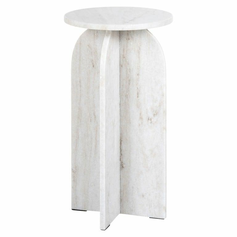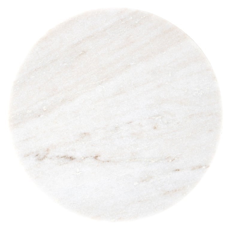 - Okrągły blat i oryginalna podstawa wykonane z białego marmuru