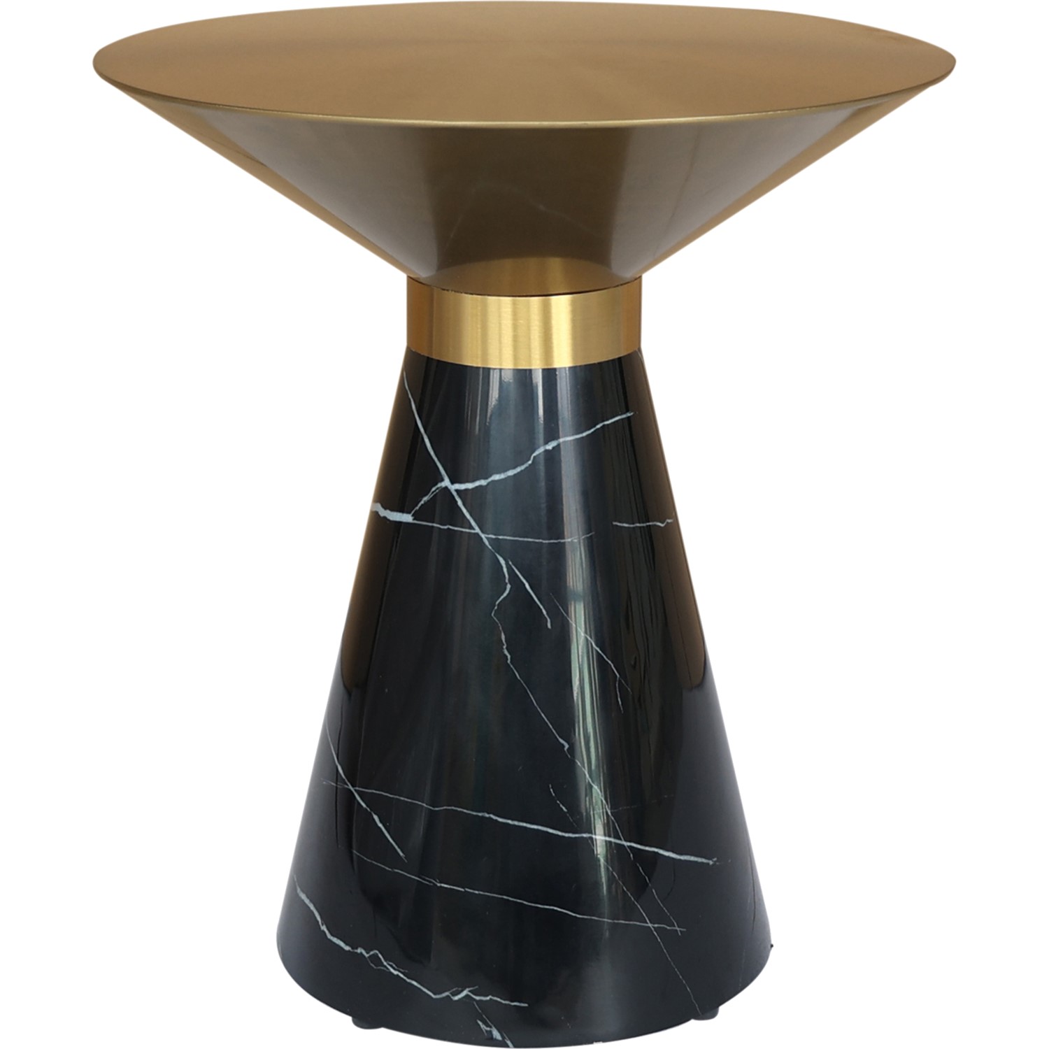 Stolik Modig M39 to synonim wyrafinowanego designu i elegancji w swojej najczystszej formie. Jego czarna podstawa, która odzwierciedla kształt stożka, emanuje nowoczesnością i subtelnością. Wykonana z wysokiej jakości materiału, podstawa imituje marmur, dodając stolikowi niepowtarzalnego prestiżu i luksusowego wyglądu. Kontrastując z marmurowym wykończeniem podstawy, okrągły blat ze stali nierdzewnej w kolorze złotym przykuwa wzrok swoim blaskiem i elegancją. Ten połyskujący element dodaje stolikowi niezwykłego uroku i wyjątkowego charakteru, tworząc dynamiczne i harmonijne połączenie ze stożkową podstawą.