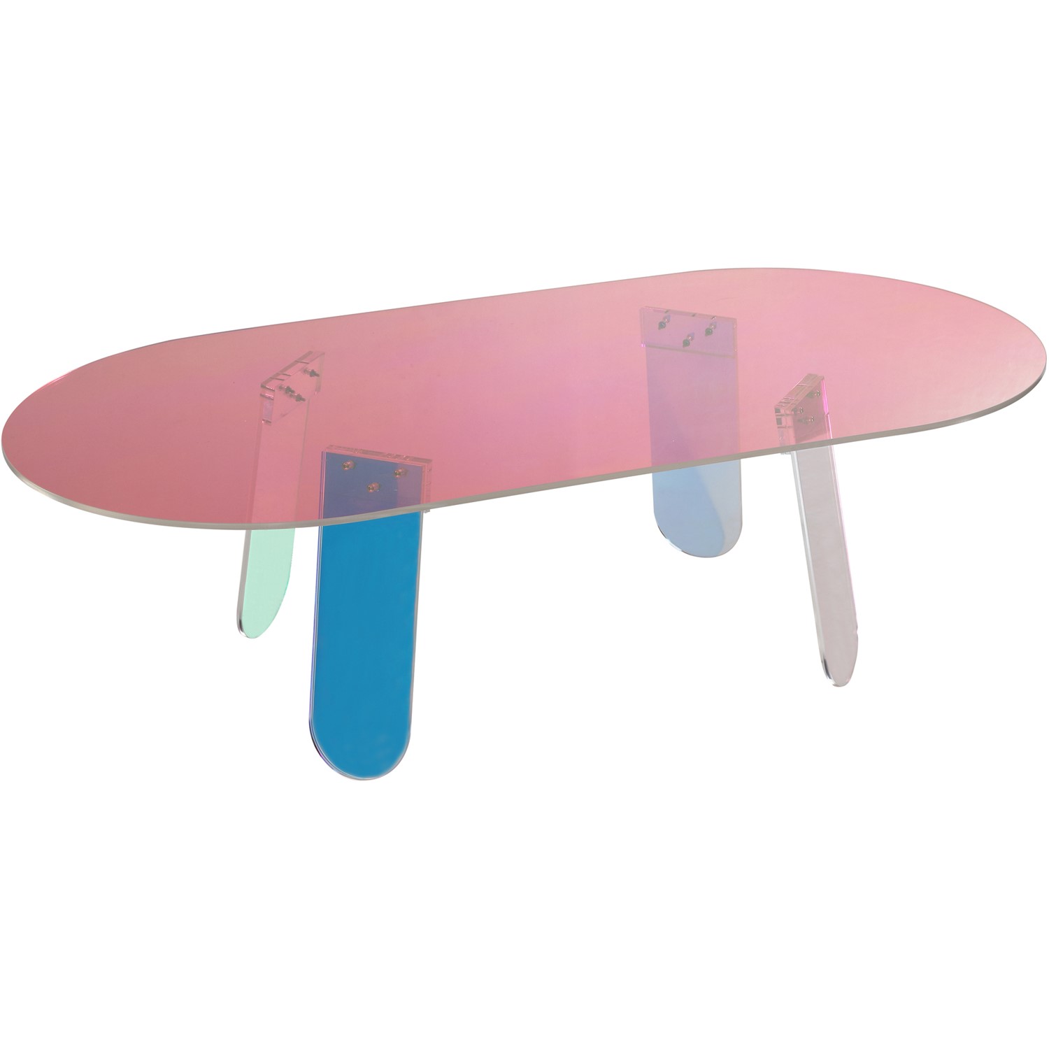 Stolik wykonany z przezroczystego, opalizującego akrylu to prawdziwa perełka w świecie mebli. Jego niezwykła materiałowa struktura ożywa pod wpływem światła, ukazując różnorodne efekty kolorystyczne w zależności od kąta padania promieni. To jakby stolik tańczył ze światłem, tworząc magiczną grę świateł i cieni. Prosta forma stolika sprawia, że jest on ponadczasowy i uniwersalny. Jego minimalistyczny design pasuje zarówno do nowoczesnych, jak i klasycznych wnętrz, dodając im subtelności i delikatności. Lekka konstrukcja stolika sprawia, że jest praktyczny w użytkowaniu i łatwy do przenoszenia, co pozwala na elastyczne aranżacje przestrzeni.