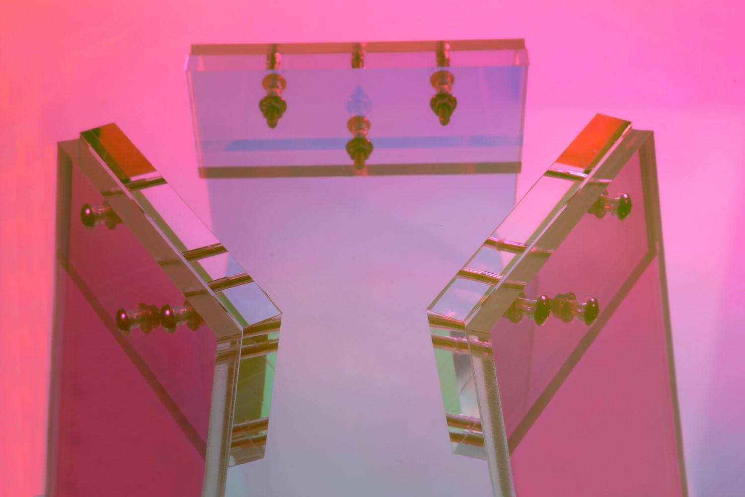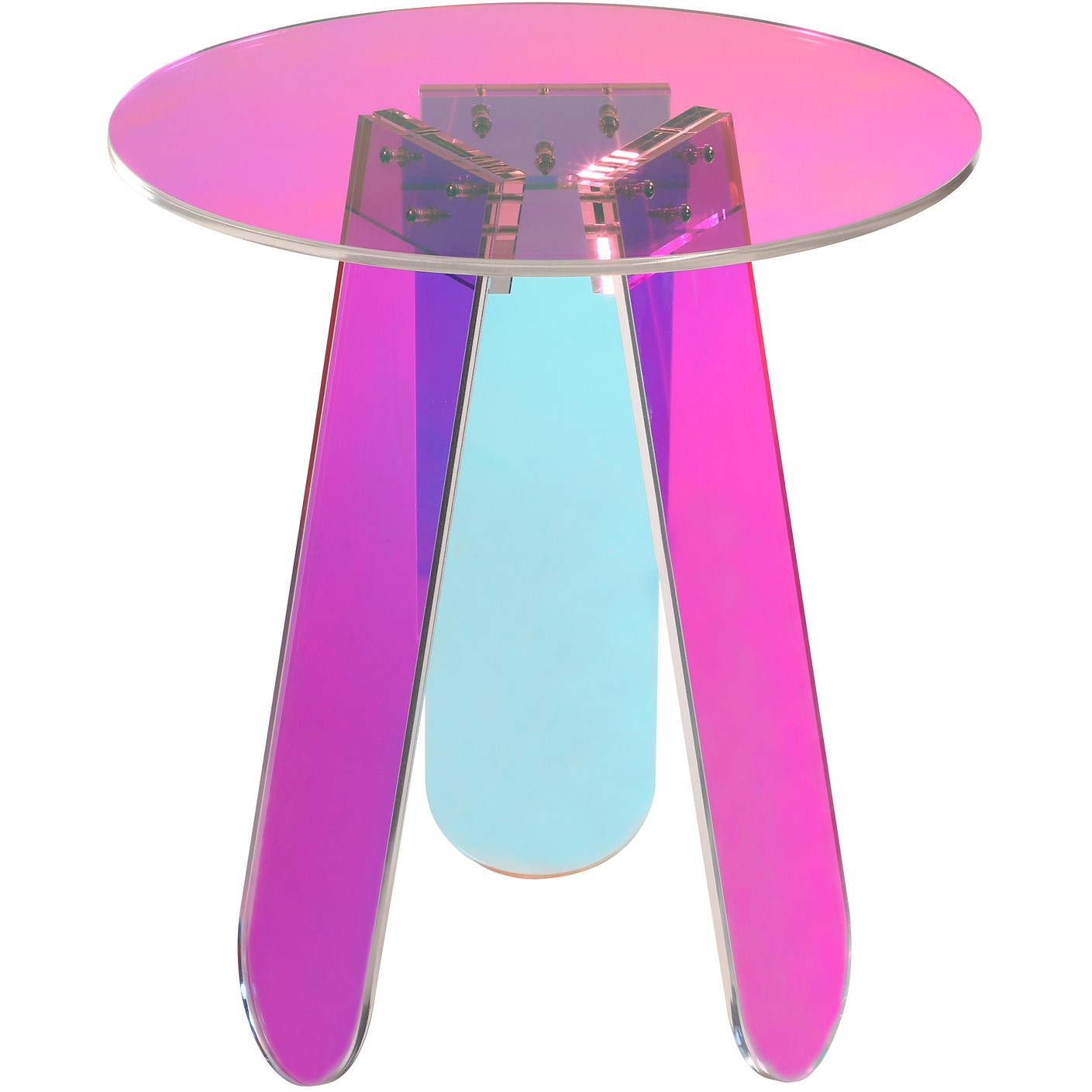 Stolik wykonany z przezroczystego, opalizującego akrylu to prawdziwa perełka w świecie mebli. Jego niezwykła materiałowa struktura ożywa pod wpływem światła, ukazując różnorodne efekty kolorystyczne w zależności od kąta padania promieni. To jakby stolik tańczył ze światłem, tworząc magiczną grę świateł i cieni. Prosta forma stolika sprawia, że jest on ponadczasowy i uniwersalny. Jego minimalistyczny design pasuje zarówno do nowoczesnych, jak i klasycznych wnętrz, dodając im subtelności i delikatności. Lekka konstrukcja stolika sprawia, że jest praktyczny w użytkowaniu i łatwy do przenoszenia, co pozwala na elastyczne aranżacje przestrzeni.